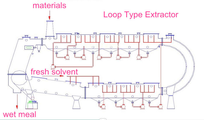 Loop type extractor is a continuous combined type extractor suitable for large scale oil extraction plant, dragging by the drag chain conveyor, the materials ratate for one cycle to complete the extraction process. Loop type extractor is suitable for the oil extraction of peanut, rapeseed, cottonseed, sunflower seed, corn germ, camellia seed, flaxseed, soybean, rice bran, etc.