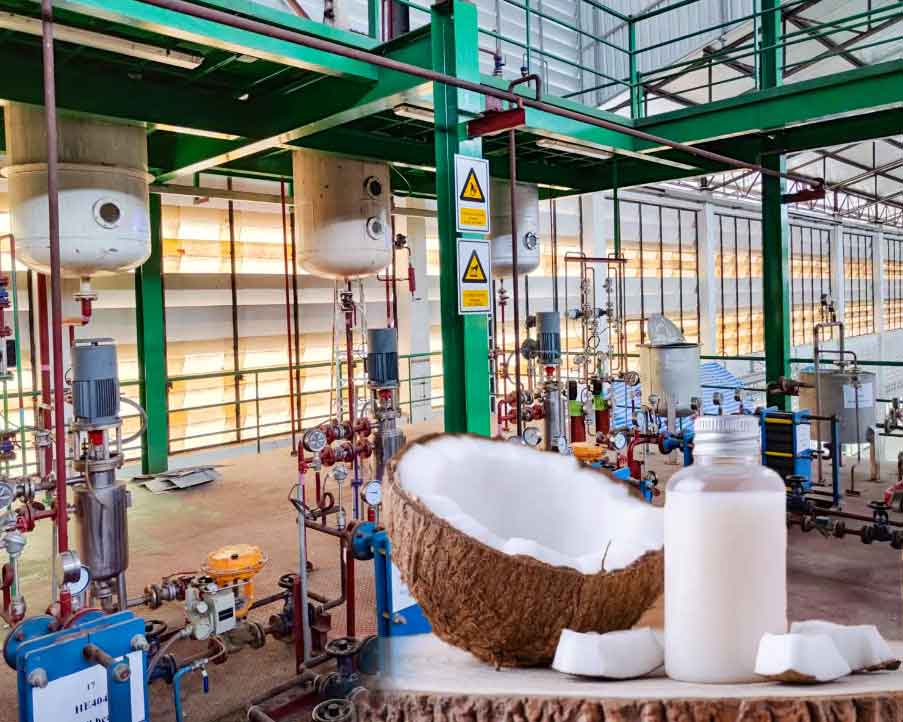 Coconut oil production line mainly includes coconut oil pretreatment and oil pressing process, refining process. The pressed coconut cake can be used as animal feed. The moisture content of dried coconut for pressing should be controlled at 7%-10%. We can offer 30-1000 TPD coconut oil processors and 1-600 TPD coconut oil refiners. To increase the oil yield for greater profit, we also offer crude coconut solvent extraction units, which can reduce the residual oil in the cake to less than 0.8%.