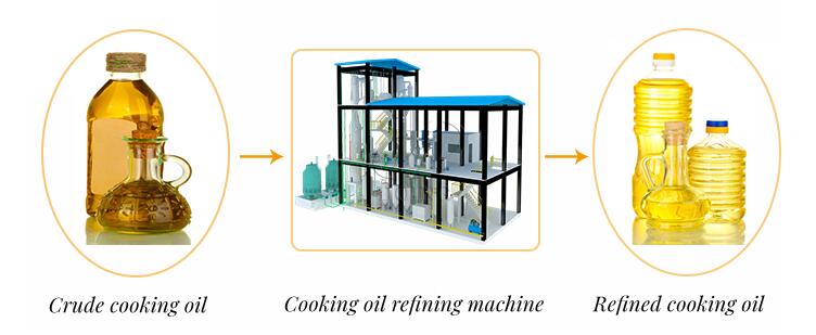 Crude cooking oil include free fatty acids, glue, peroxide, water, and cake residue in pancakes and so on. Through cooking oil refining process, the purified cooking oil would meet the standard of country’s cooking oil and could be sold in the market.