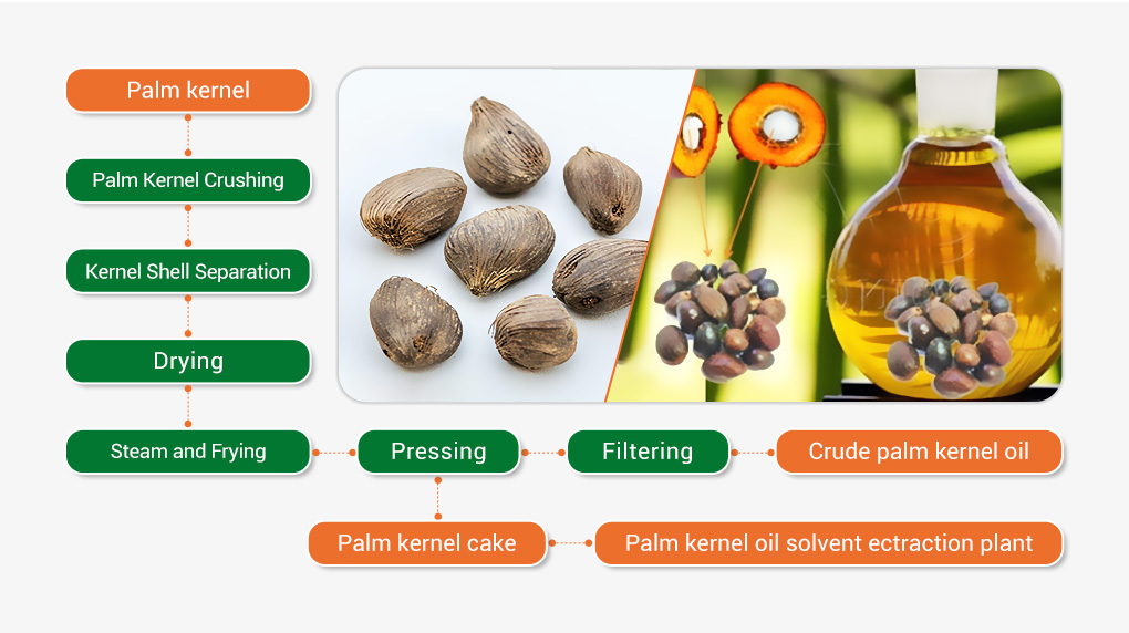 Mainly through heating and steaming and frying, the palm kernel can achieve good oil production conditions, so that more high-quality palm kernel oil can be obtained.